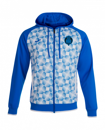 Chaqueta muy versátil con capucha, perfecta para abrigarse durante los entrenamientos o partidos. Equipada con dos bolsillos sin cremallera en la parte delantera para que puedas guardar pequeños objetos personales. Luce un aspecto deportivo con los colores del Club de Fútbol Gandia.